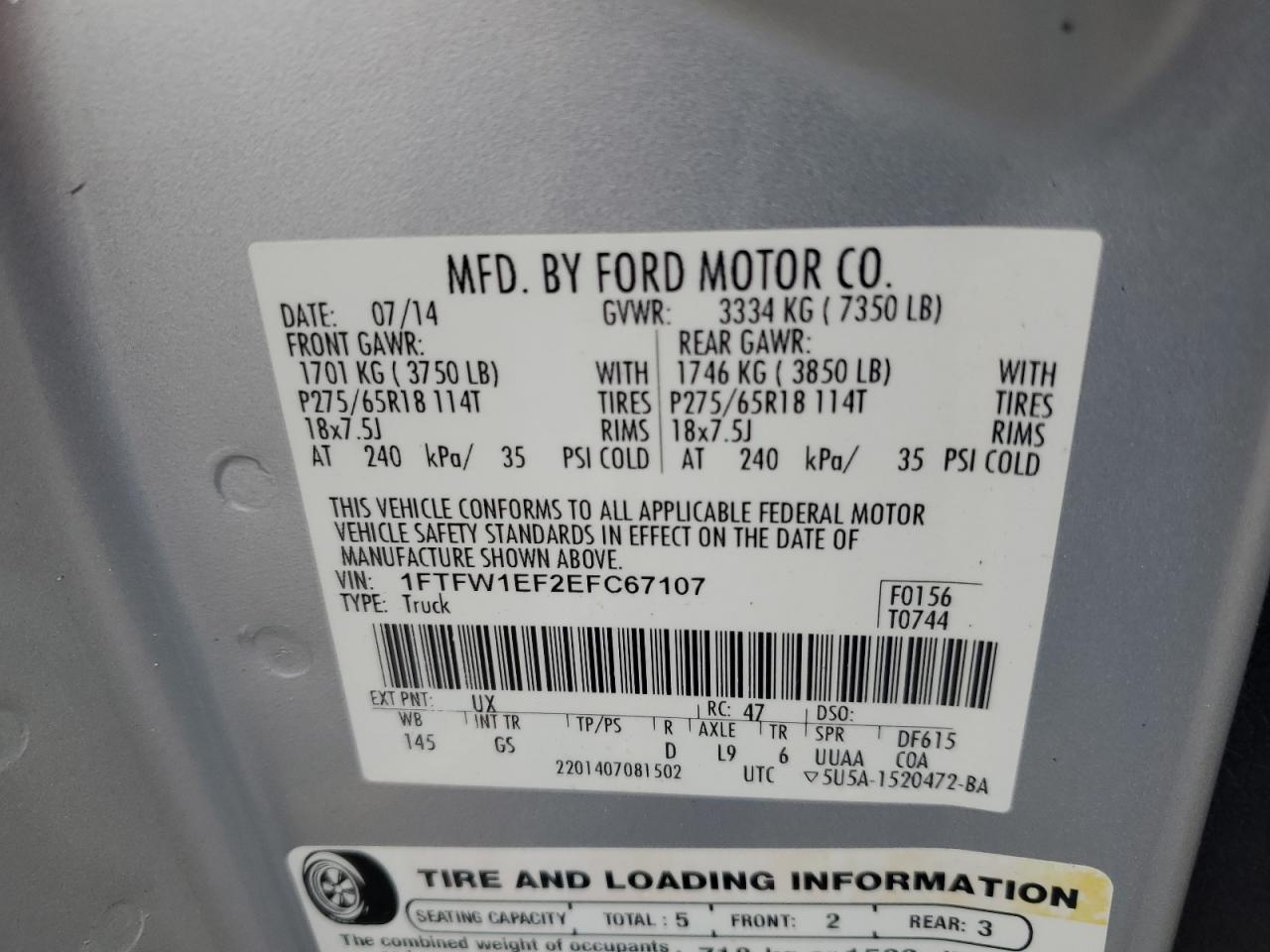 Цвет СеребряныйЦилиндры 8Привод 4x4 с задним приводомVIN 1FTFW1EF2EFC67107Состояние Заводится и едет (проверено)Повреждение Передняя или задняя