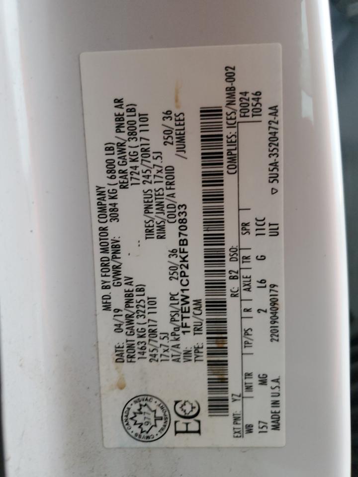 FORD F-150 2.7 2019 г.в., Задний привод (1FTEW1CP2KFB70833) из США