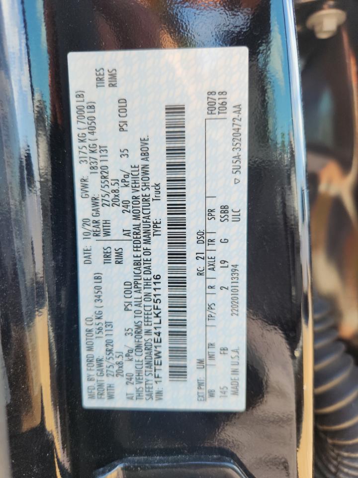 FORD F-150 3.5 2020 г.в., 4x4 с задним приводом (1FTEW1E41LKF51116) из США