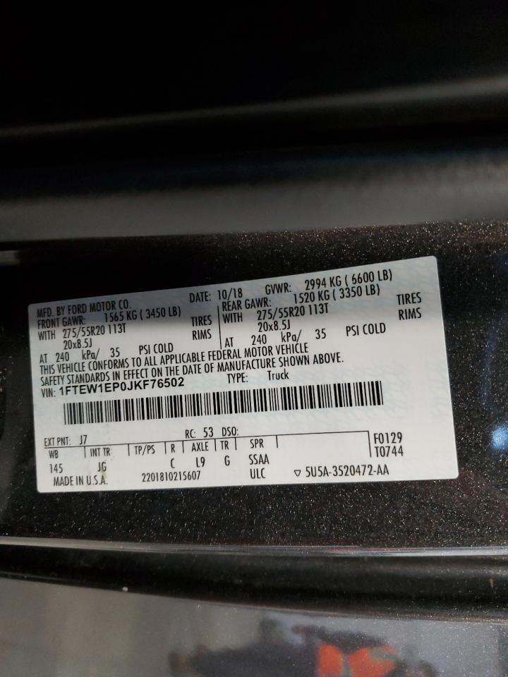 FORD F-150 2.7 2018 г.в., 4x4 с задним приводом (1FTEW1EP0JKF76502) из США