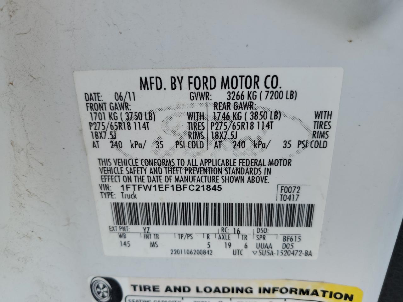 FORD F-150 5.0 2011 г.в., 4x4 с задним приводом (1FTFW1EF1BFC21845) из США