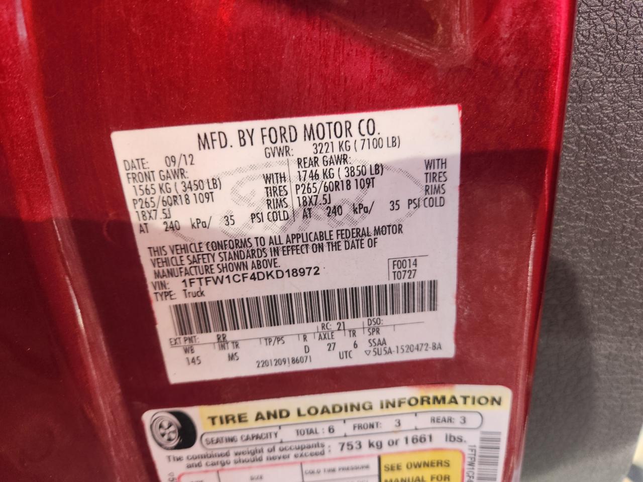 Цвет БордовыйЦилиндры 8Привод Задний приводVIN 1FTFW1CF4DKD18972Состояние Заводится и едет (проверено)Повреждение Передняя или задняя