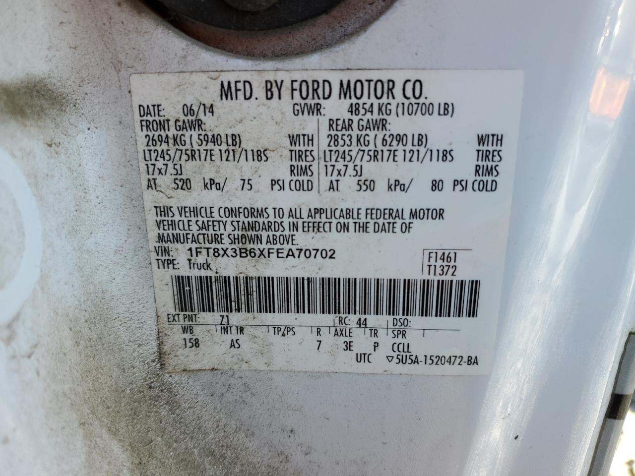 FORD F-350 6.2 2015 г.в., 4x4 с задним приводом (1FT8X3B6XFEA70702) из США