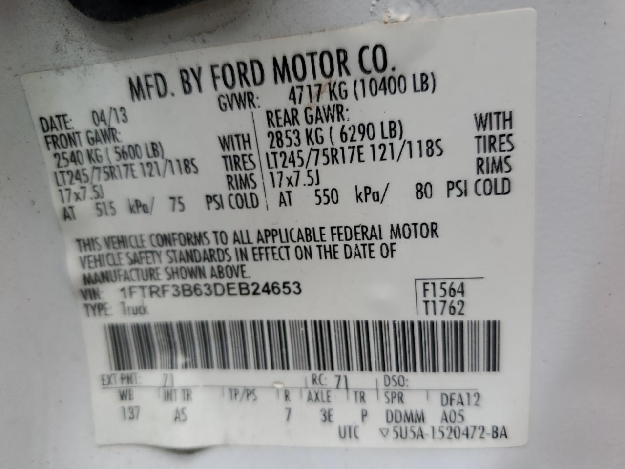 FORD F-350 6.2 2013 г.в., 4x4 с задним приводом (1FTRF3B63DEB24653) из США