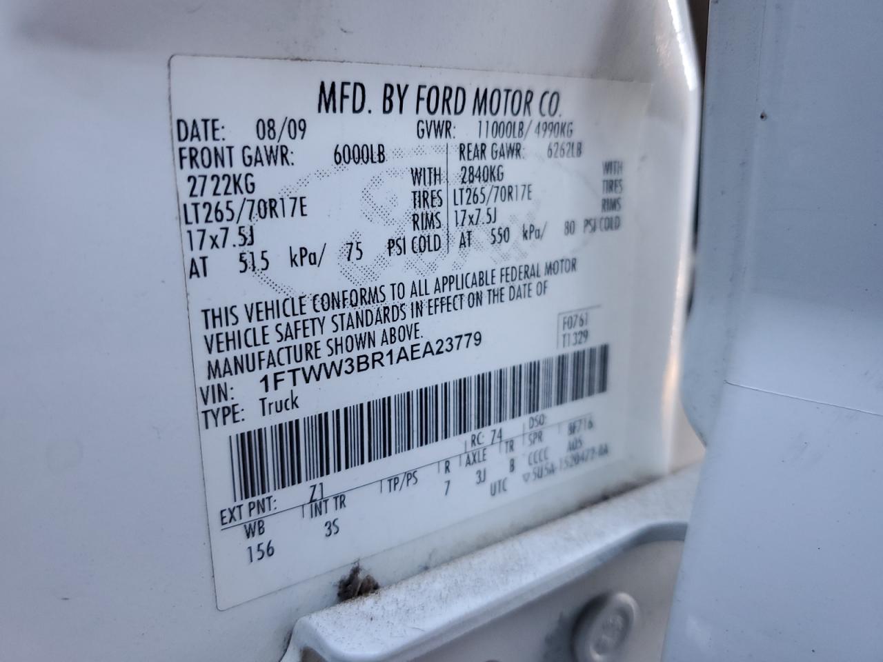 Цвет БелыйЦилиндры 8Привод 4x4 с задним приводомVIN 1FTWW3BR1AEA23779Состояние НеизвестноПовреждение Механические поврежденияДата аукциона 2025-11-03