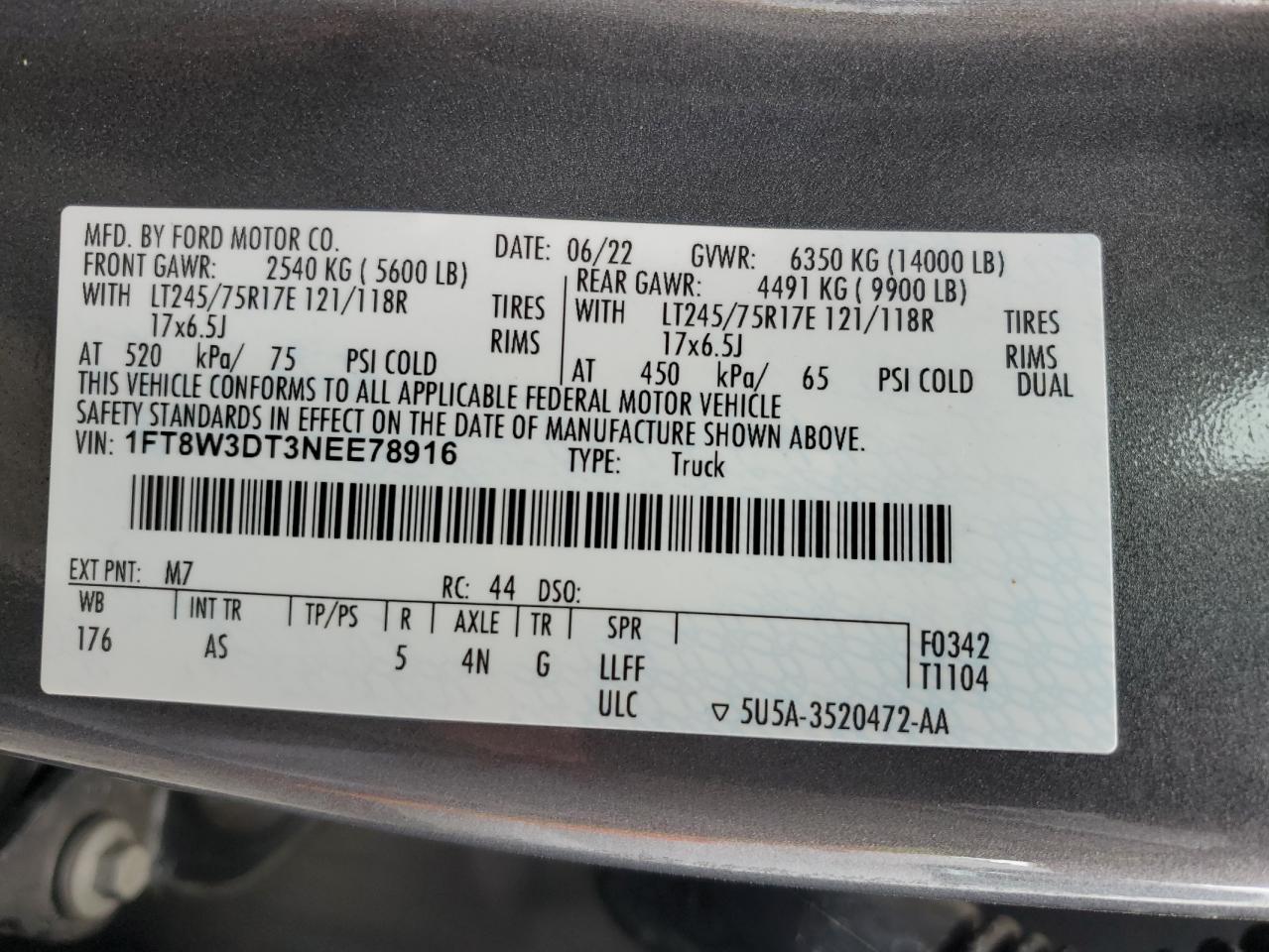 Цвет СерыйЦилиндры 8Привод 4x4 с задним приводомVIN 1FT8W3DT3NEE78916Состояние Заводится и едет (проверено)Повреждение Задняя