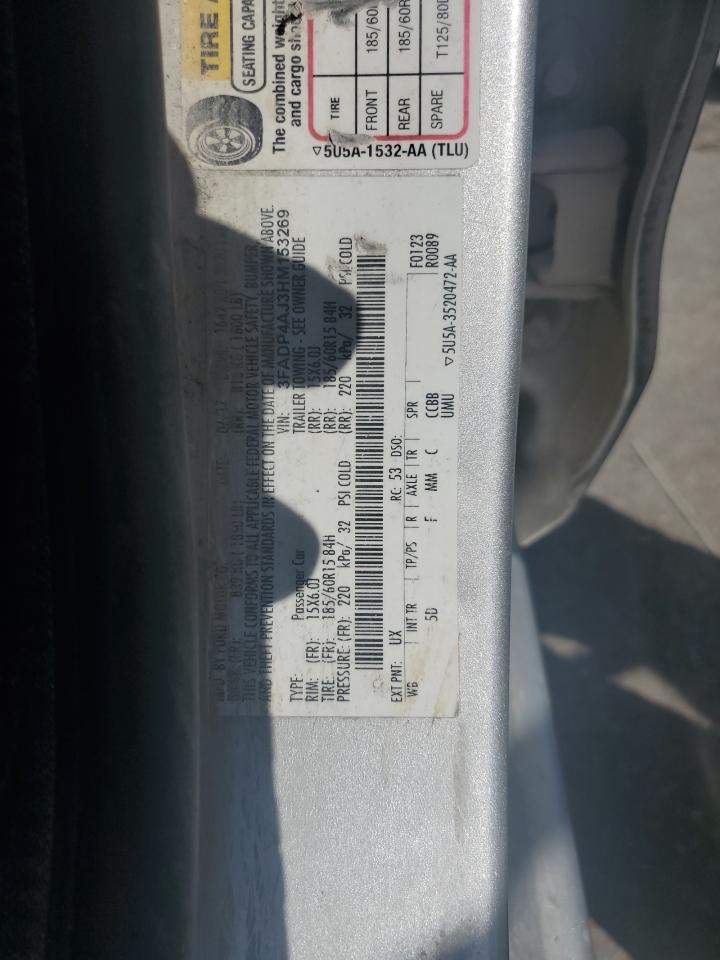 Цвет СеребряныйЦилиндры 4VIN 3FADP4AJ3HM153269Состояние НеизвестноПовреждение Передняя или задняя
