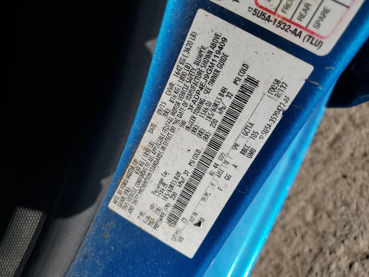 FORD FIESTA 1.6 2016 г.в., (3FADP4EJ9GM119409) из США