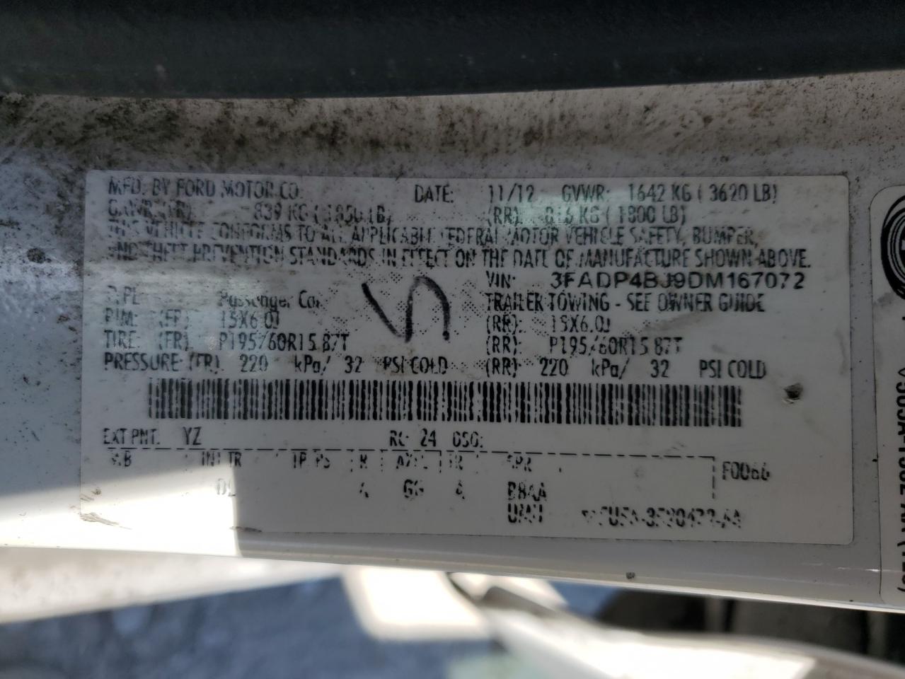 FORD FIESTA 1.6 2013 г.в., (3FADP4BJ9DM167072) из США