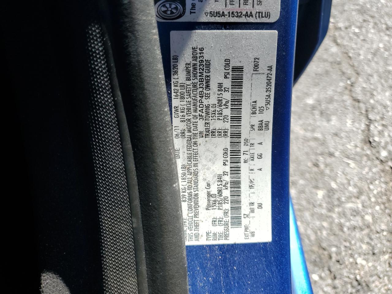 FORD FIESTA 1.6 2011 г.в., (3FADP4BJ3BM239316) из США