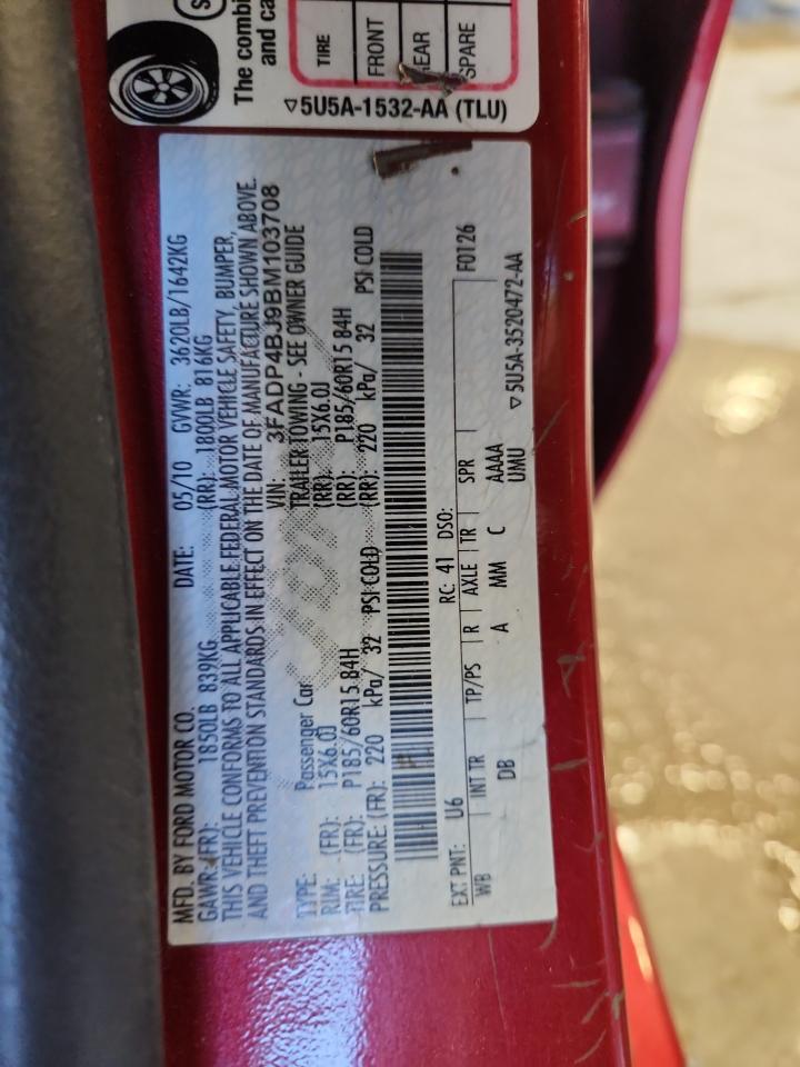 Цвет КрасныйЦилиндры 4VIN 3FADP4BJ9BM103708Состояние Заводится и едет (проверено)Повреждение Передняя или задняя