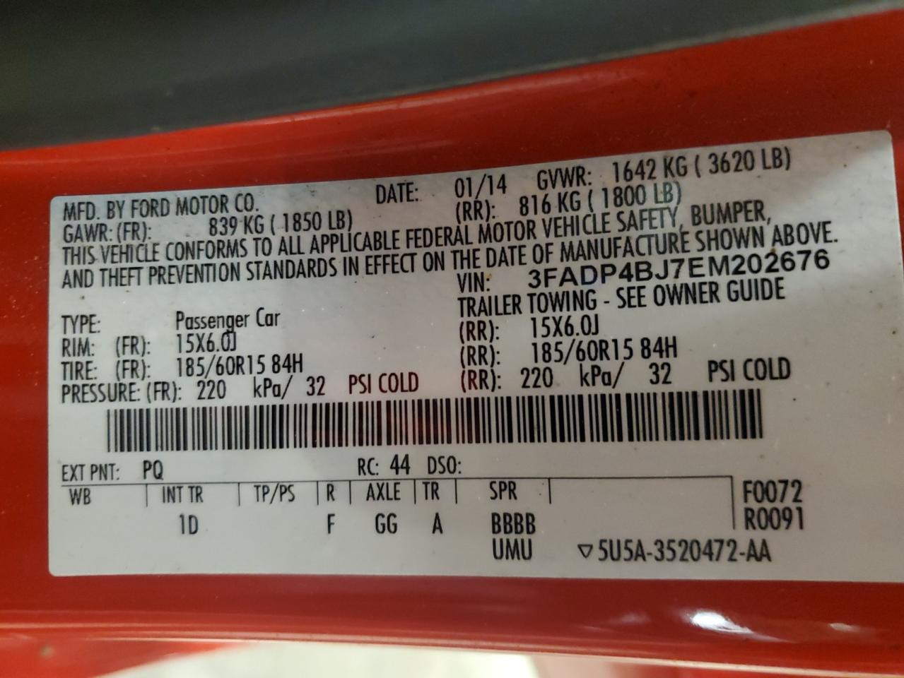 FORD FIESTA 1.6 2014 г.в., (3FADP4BJ7EM202676) из США