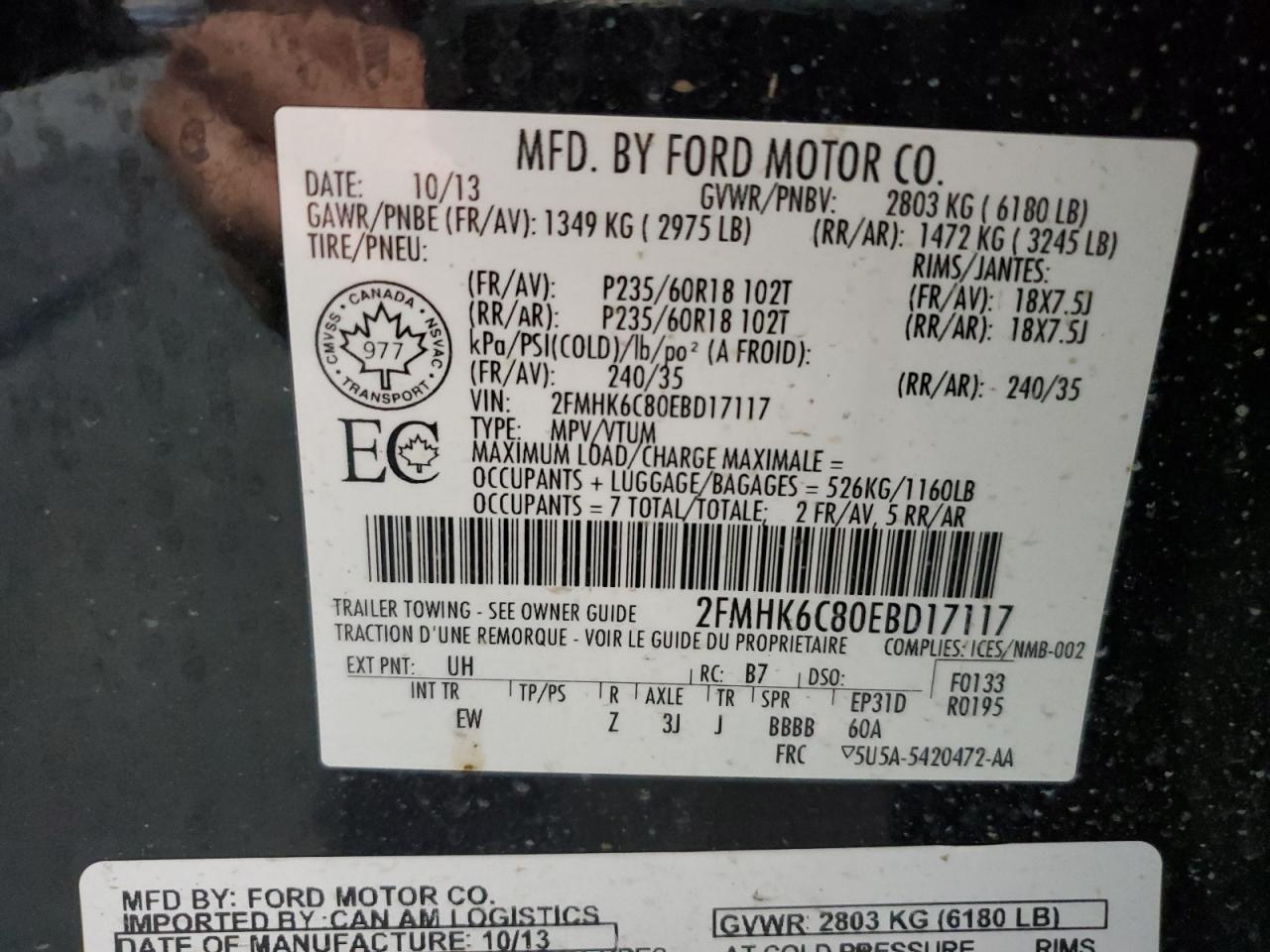 FORD FLEX 3.5 2014 г.в., Полный привод (2FMHK6C80EBD17117) из США
