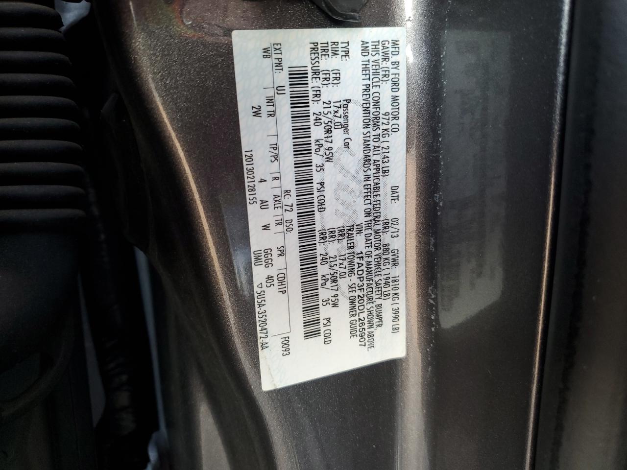 Цвет СерыйЦилиндры 4VIN 1FADP3F20DL265907Состояние НеизвестноПовреждение Передняя или задняя