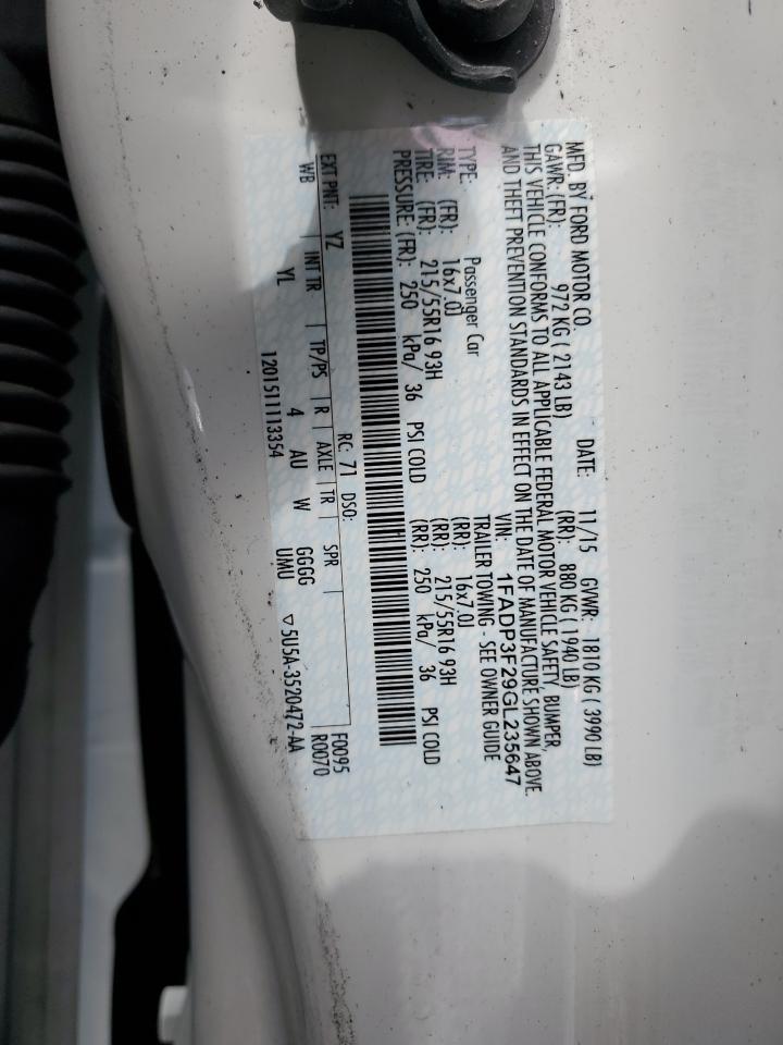 Цвет БелыйЦилиндры 4VIN 1FADP3F29GL235647Состояние НеизвестноПовреждение Задняя