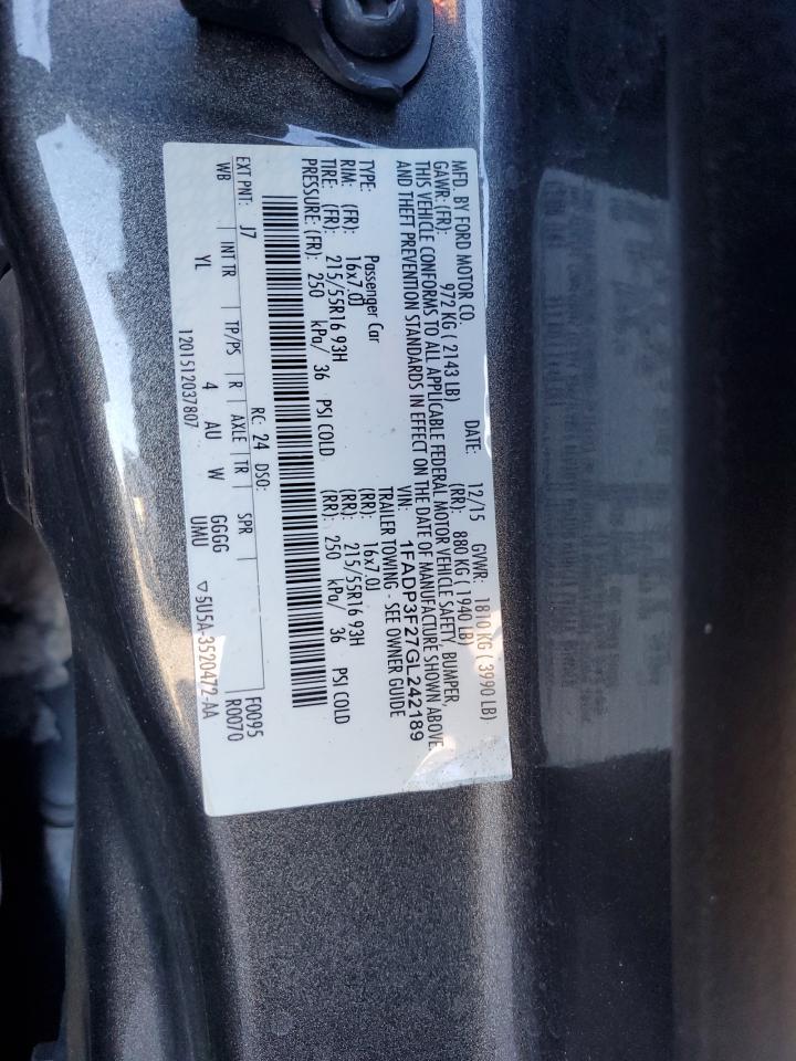 FORD FOCUS 2.0 2016 г.в., (1FADP3F27GL242189) из США