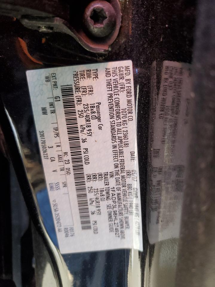 Цвет ЧерныйЦилиндры 4VIN 1FADP3L98HL274927Состояние ЗаводитсяПовреждение Передняя или задняя