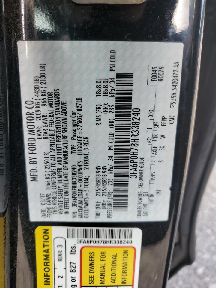 Цвет ЧерныйЦилиндры 4VIN 3FA6P0H78HR338240Состояние Заводится и едет (проверено)Повреждение По бокам