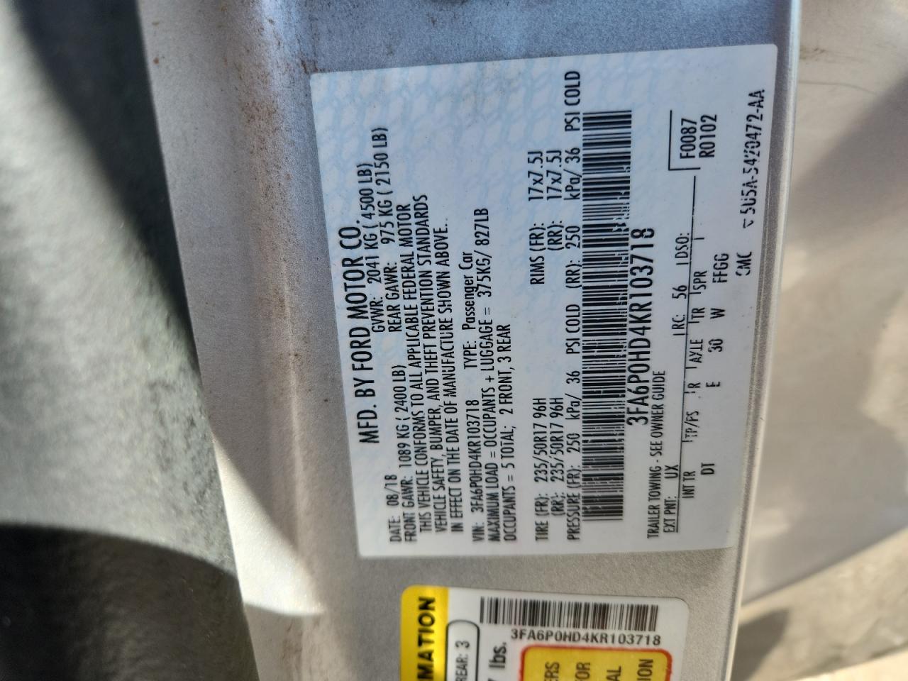 FORD FUSION 1.5 2019 г.в., (3FA6P0HD4KR103718) из США