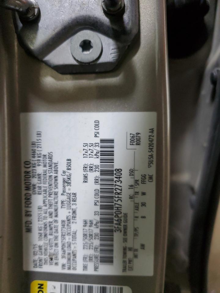 Цвет ЗагарЦилиндры 4VIN 3FA6P0H75FR273408Состояние ЗаводитсяПовреждение Передняя или задняя