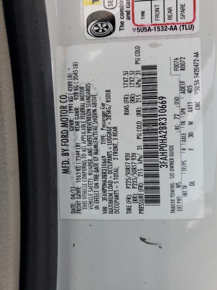 FORD FUSION 2.5 2011 г.в., (3FAHP0HA2BR310669) из США