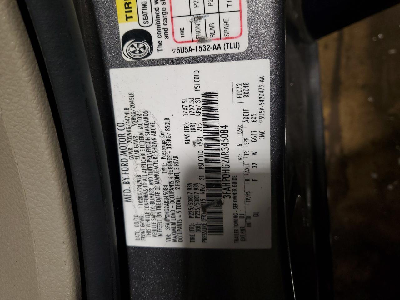 FORD FUSION 3.0 2010 г.в., (3FAHP0HG2AR345084) из США