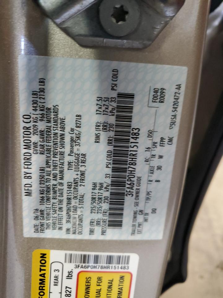 Цвет ЗолотойЦилиндры 4VIN 3FA6P0H78HR151483Состояние ЗаводитсяПовреждение Передняя или задняя