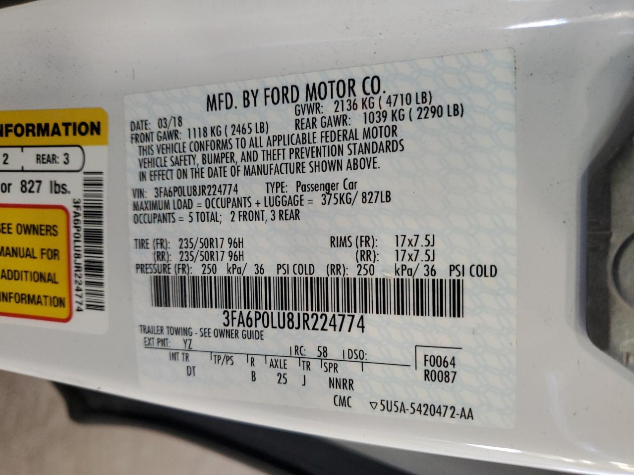 FORD FUSION 2.0 2018 г.в., (3FA6P0LU8JR224774) из США