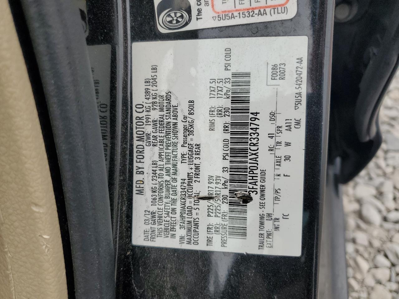 2012 FORD FUSION SPORT