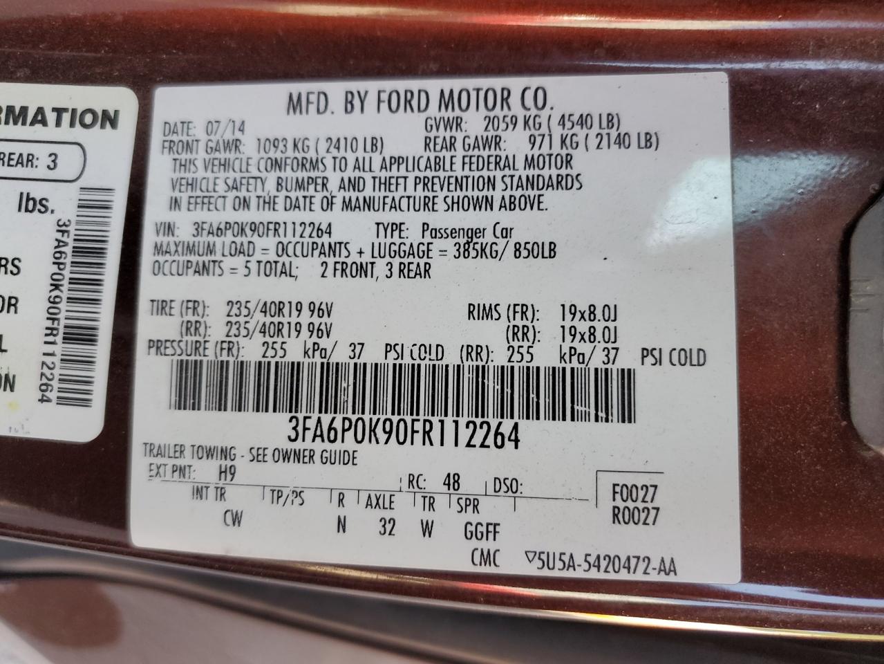 FORD FUSION 2.0 2015 г.в., (3FA6P0K90FR112264) из США
