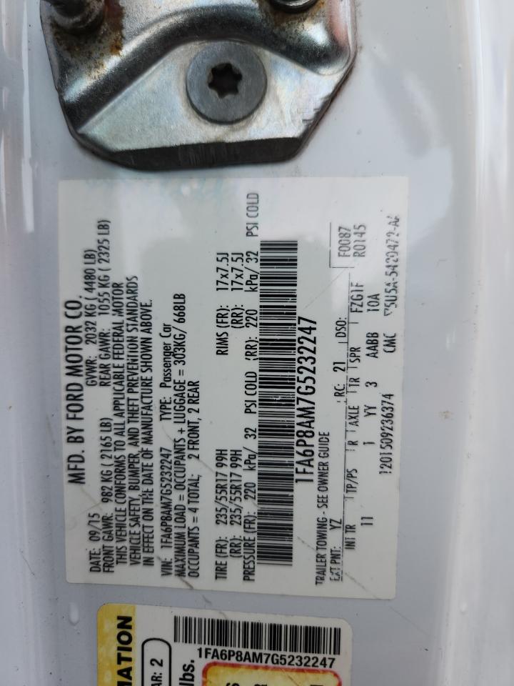 Цвет БелыйЦилиндры 6Привод Задний приводVIN 1FA6P8AM7G5232247Состояние НеизвестноПовреждение Передняя или задняя