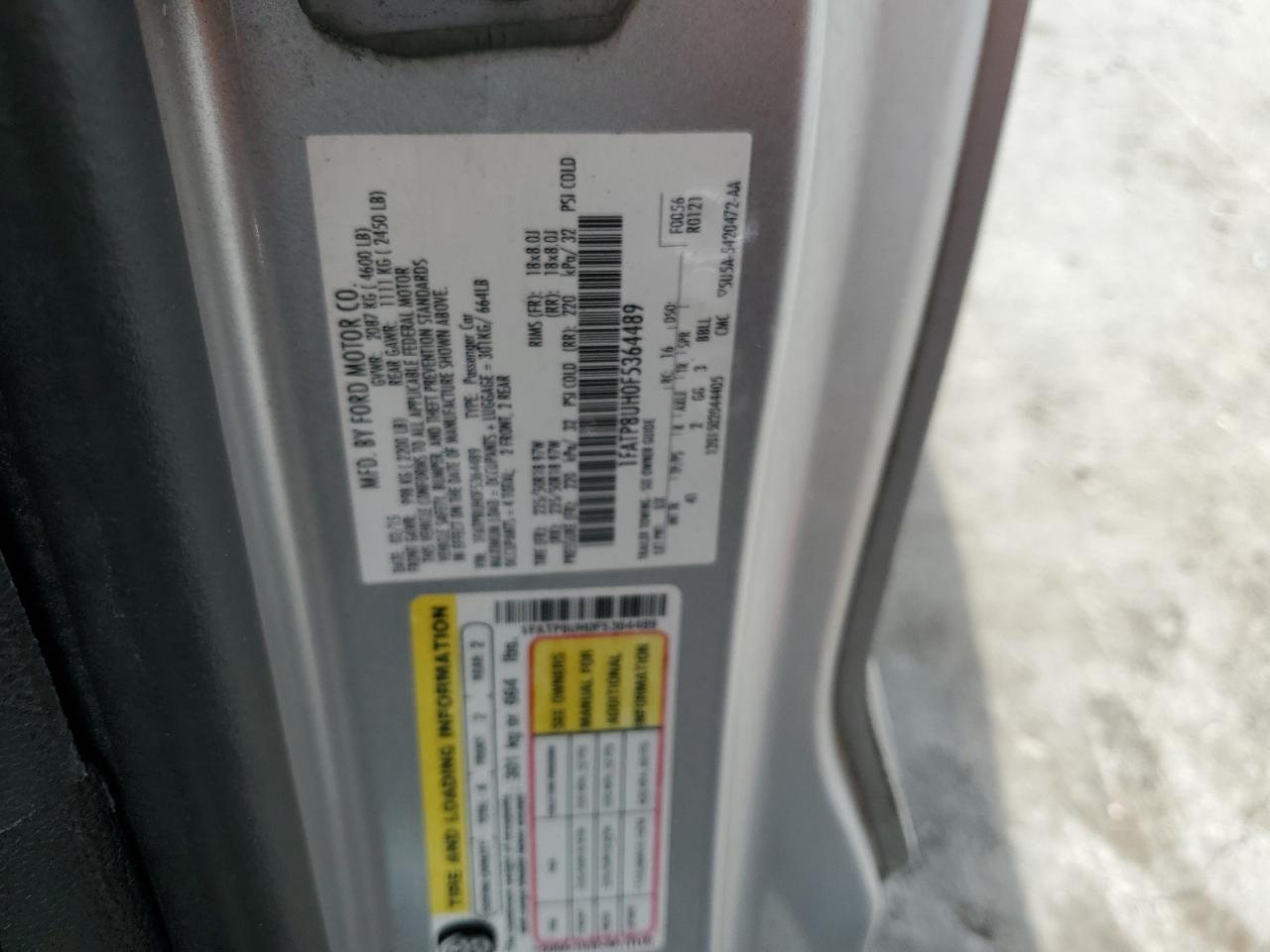 Цвет СеребряныйЦилиндры 4Привод Задний приводVIN 1FATP8UH0F5364489Состояние НеизвестноПовреждение По всему автоДата аукциона 2025-11-03