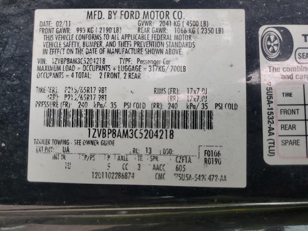 Цвет ЧерныйЦилиндры 6Привод Задний приводVIN 1ZVBP8AM3C5204218Состояние Заводится и едет (проверено)Повреждение Передняя или задняяДата аукциона 2025-11-06