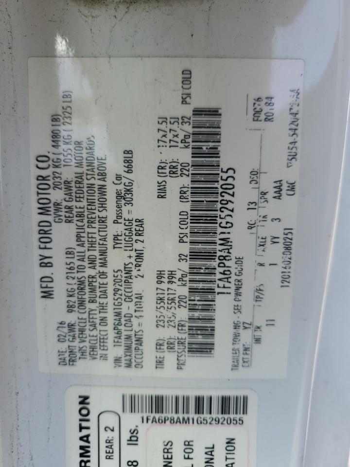 Цвет БелыйЦилиндры 6Привод Задний приводVIN 1FA6P8AM1G5292055Состояние НеизвестноПовреждение Передняя или задняяДата аукциона 2025-11-07