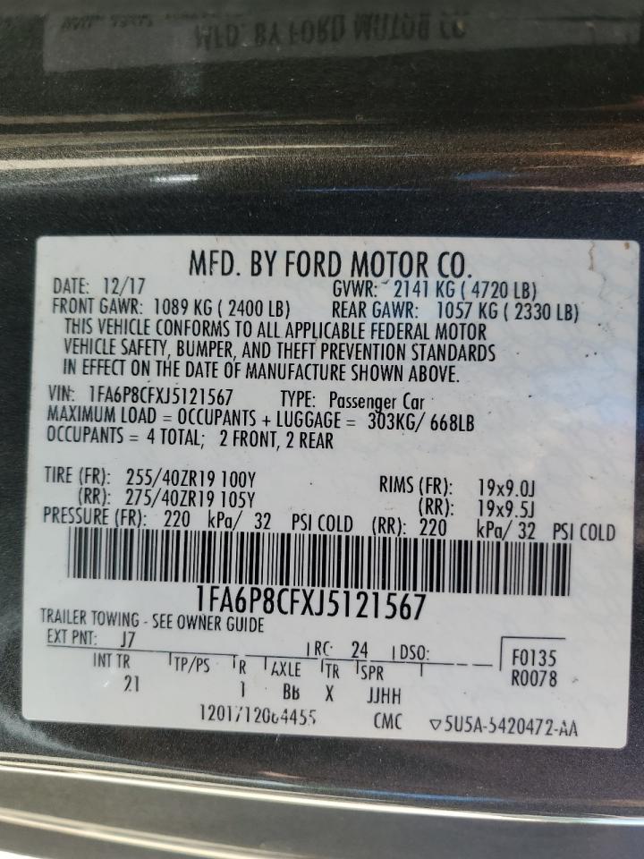 FORD MUSTANG 5.0 2018 г.в., Задний привод (1FA6P8CFXJ5121567) из США
