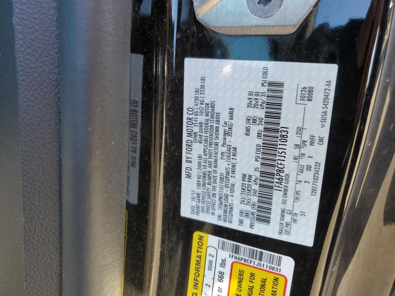 Цвет ЧерныйЦилиндры 8Привод Задний приводVIN 1FA6P8CF1J5110831Состояние ЗаводитсяПовреждение Передняя или задняя