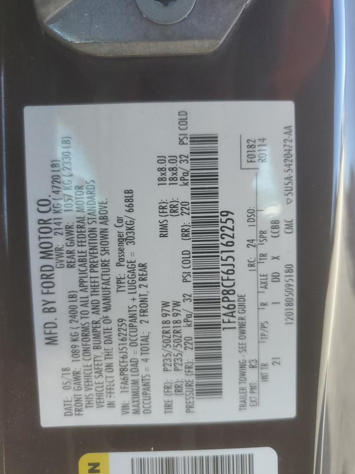 FORD MUSTANG 5.0 2018 г.в., Задний привод (1FA6P8CF6J5162259) из США