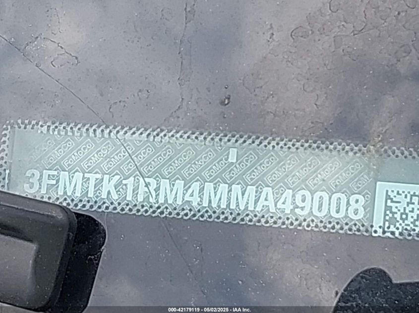Цвет ЧерныйVIN 3FMTK1RM4MMA49008Состояние Заводится и едет (проверено)Повреждение ОпрокидываниеДата аукциона 2025-11-12