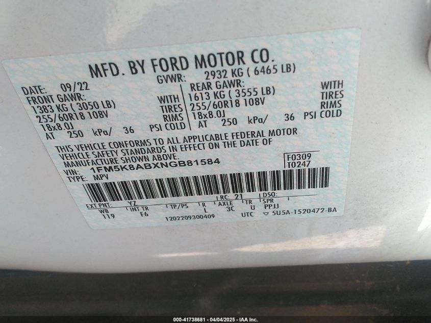 Цвет БелыйЦилиндры 6Привод Полный приводVIN 1FM5K8ABXNGB81584Состояние Заводится и едет (проверено)Повреждение Крыша