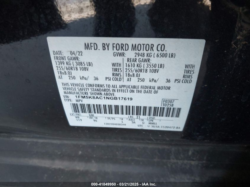 FORD POLICE INTERCEPTOR 3.0 2022 г.в., Полный привод (1FM5K8AC1NGB17619) из США