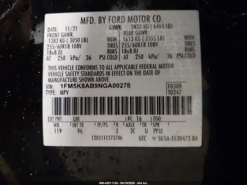 FORD POLICE INTERCEPTOR 3.3 2022 г.в., Полный привод (1FM5K8AB9NGA00278) из США