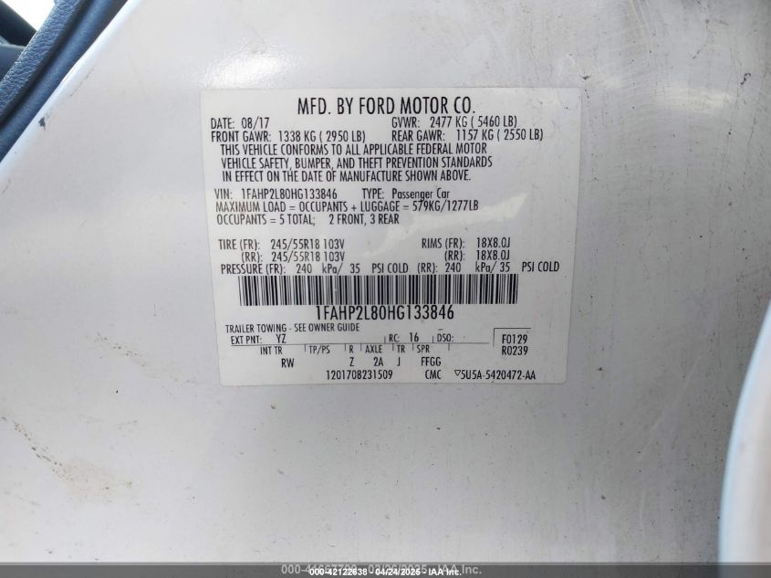 FORD POLICE INTERCEPTOR 3.5 2017 г.в., Передний привод (1FAHP2L80HG133846) из США