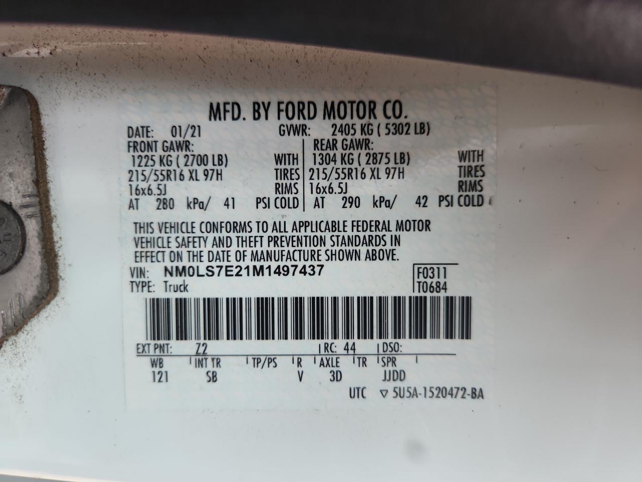 FORD TRANSIT CONNECT 2.0 2021 г.в., (NM0LS7E21M1497437) из США