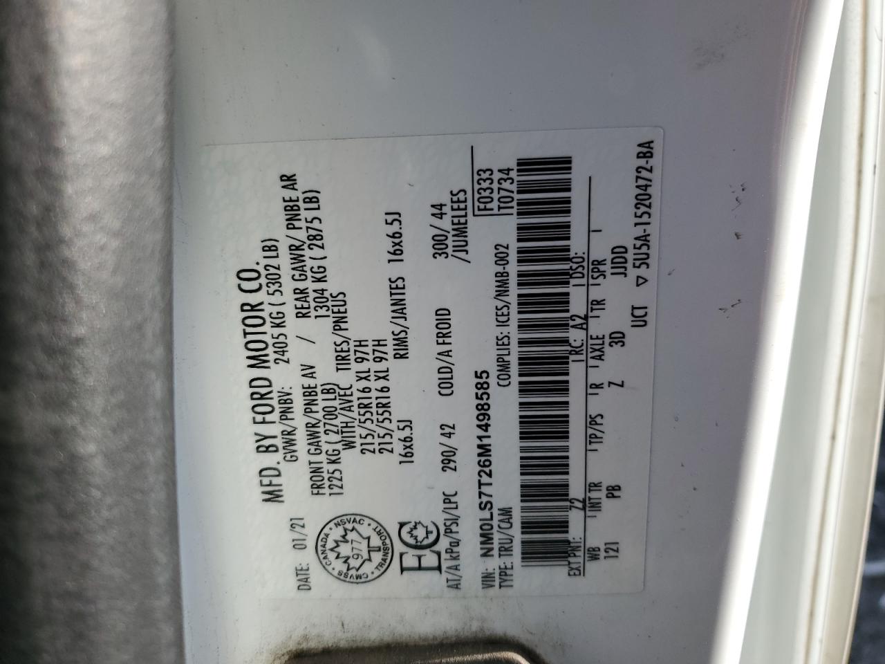 FORD TRANSIT CONNECT 2.0 2021 г.в., (NM0LS7T26M1498585) из США