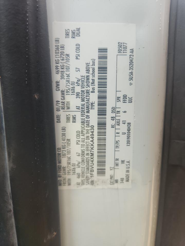FORD TRANSIT 3.7 2019 г.в., Задний привод (1FBVU4XM7KKA49430) из США