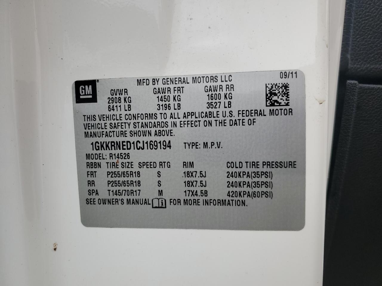 Цвет БелыйЦилиндры 6VIN 1GKKRNED1CJ169194Состояние Заводится и едет (проверено)Повреждение По бокам