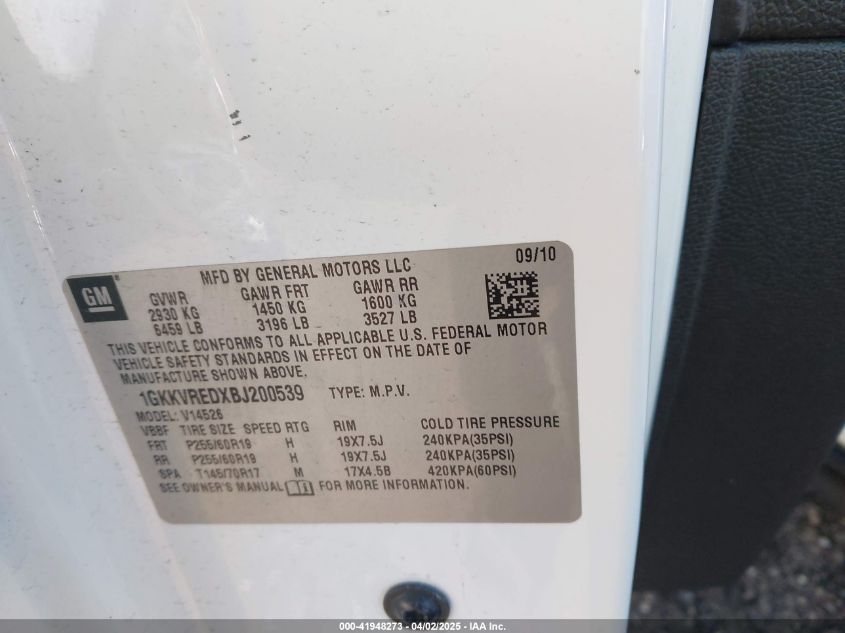 GMC ACADIA 3.6 2011 г.в., Полный привод (1GKKVREDXBJ200539) из США
