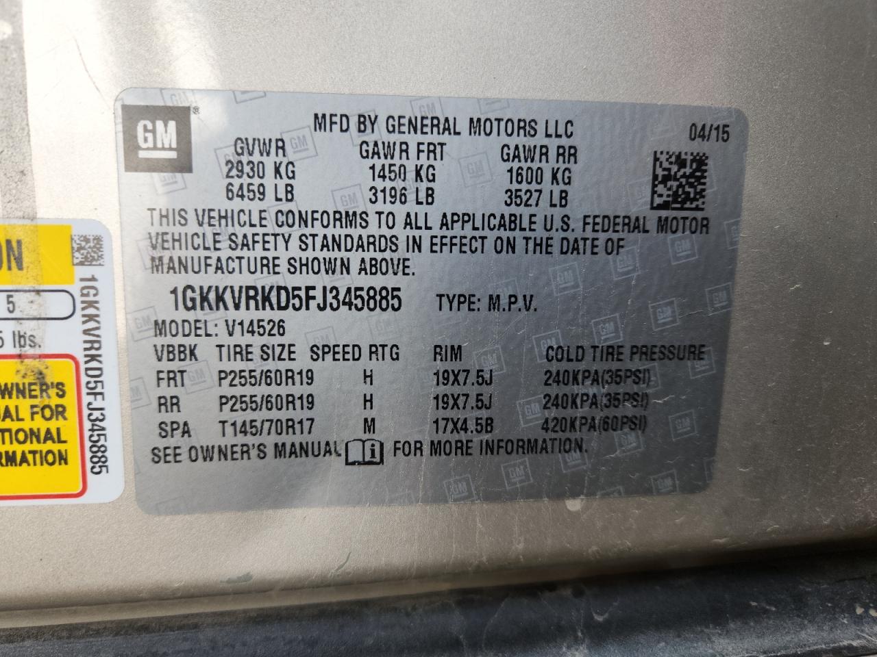 GMC ACADIA 3.6 2015 г.в., Полный привод (1GKKVRKD5FJ345885) из США