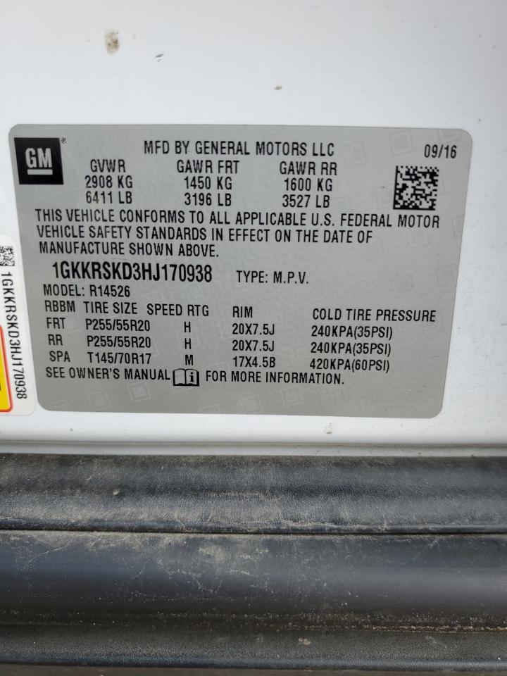 Цвет БелыйЦилиндры 6VIN 1GKKRSKD3HJ170938Состояние ЗаводитсяПовреждение Передняя или задняя
