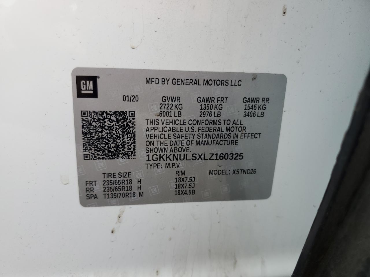 Цвет БелыйЦилиндры 6Привод Полный приводVIN 1GKKNULSXLZ160325Состояние НеизвестноПовреждение Передняя или задняя
